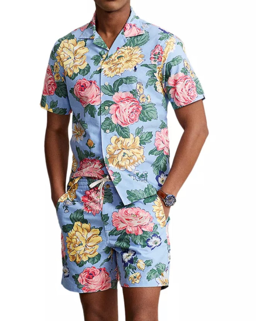 Ok. After buying extremely expensive overprices short sets this spring I ran across this Polo baby blue floral print at Macy’s. The print is fabulous and bold, and the fabric is very sturdy. Sturdy like the friend you always borrow money and steal drinks from. Ha! I will say and please pay attention this set is for lounging “comfortably”. It is extremely boxy and loose-fitting. You don’t wear this to show off your pecs, abs, or even a nice bubble butt. I understand all clothing has a purpose, and I even wore this lounging poolside at a family function…… Before I gave it to Fluffy-Pig. Haha.