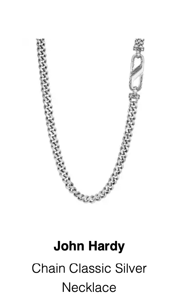 I bought a David Yurman link chain and a John Hardy mixed media chain. Both are in style. At first look I thought the David Yurman chain was more interesting, sexier, and made more of a statement. The Yurman chain is also a little heavier. While the Yurman chain is more “rock and roll” the John Hardy looks as if it’s trying to be more refined but unable to pull it off. The John Hardy is just a little boring.